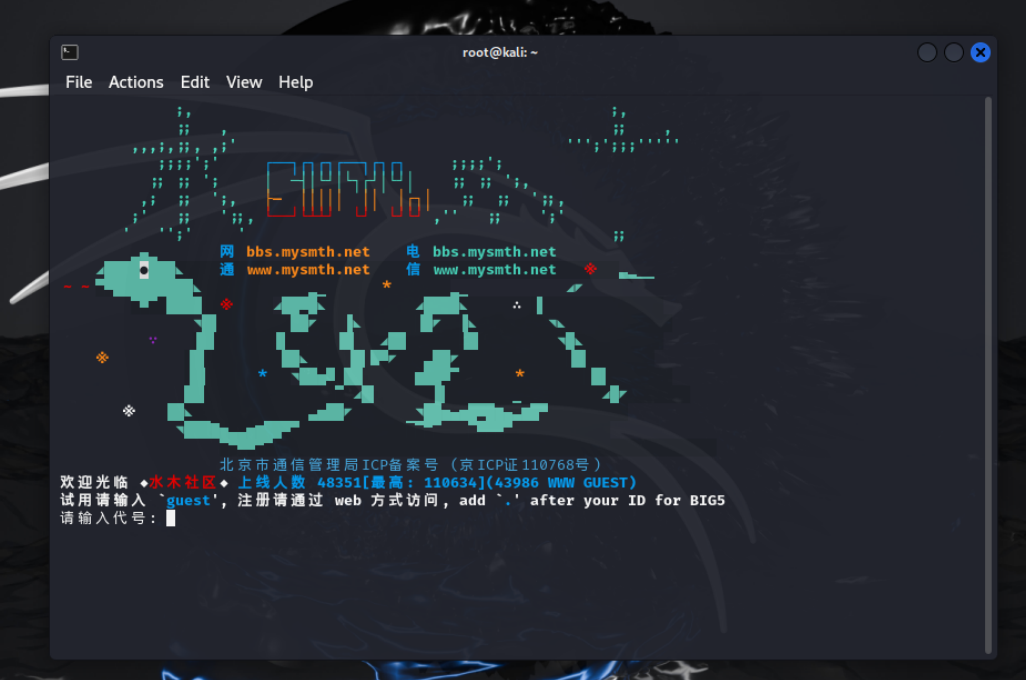 以telnet方式访问水木清华社区: