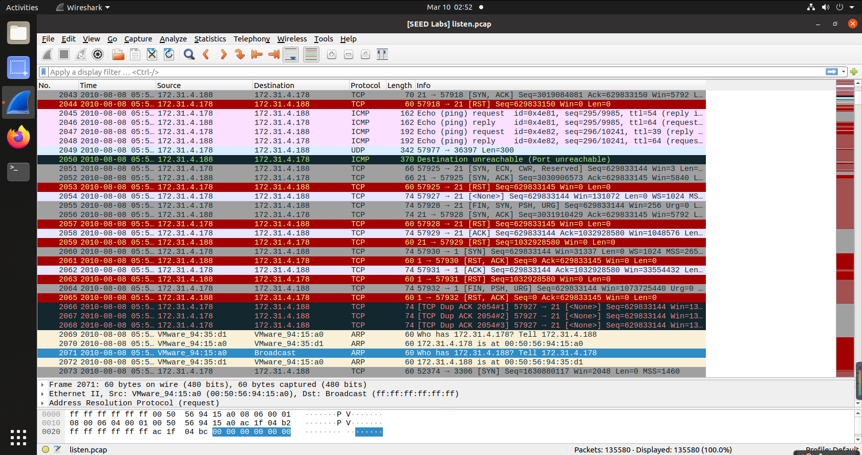 用wireshark打开listen.pcap,分析攻击者的攻击过程: