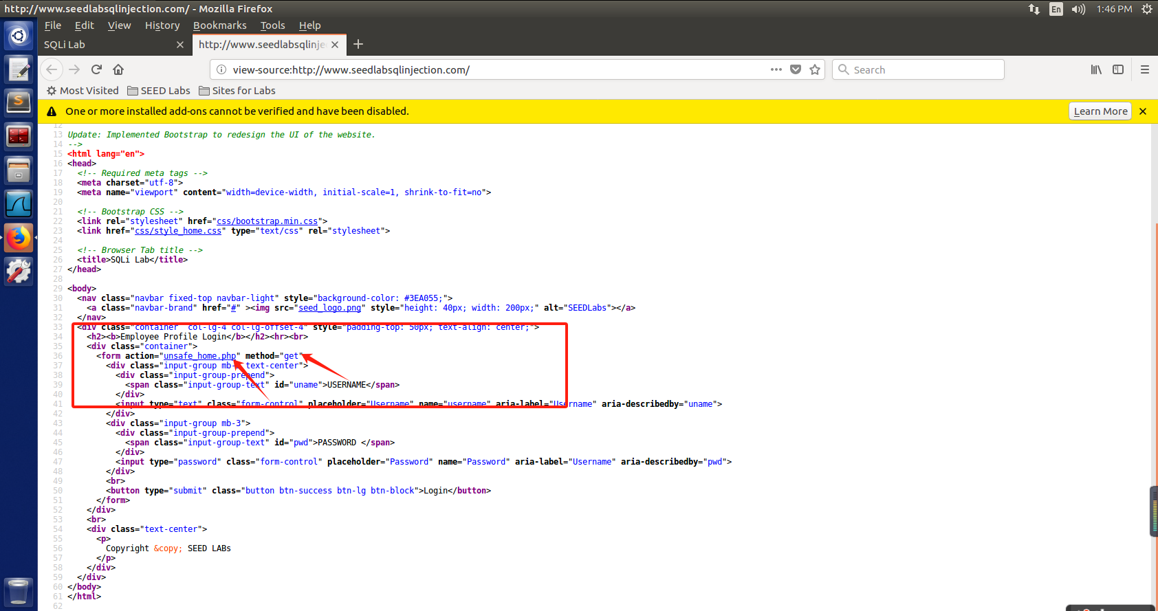 查看网页源码,用户以GET方式将账户密码提交至unsafe_home.php进行验证: