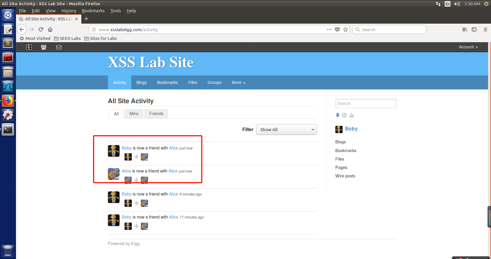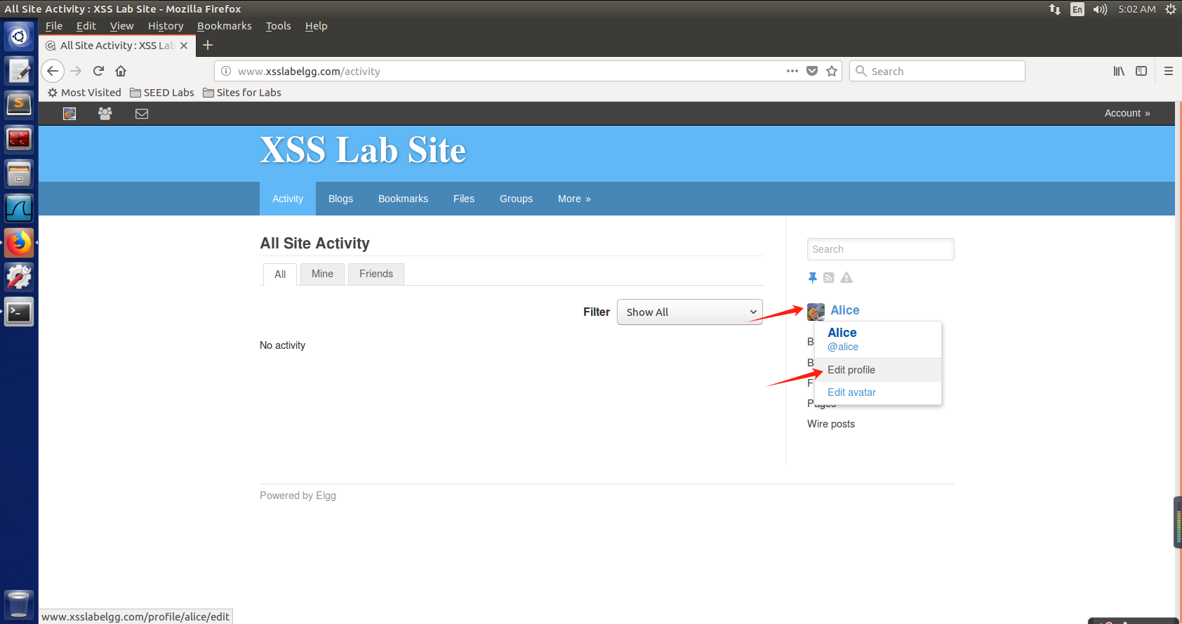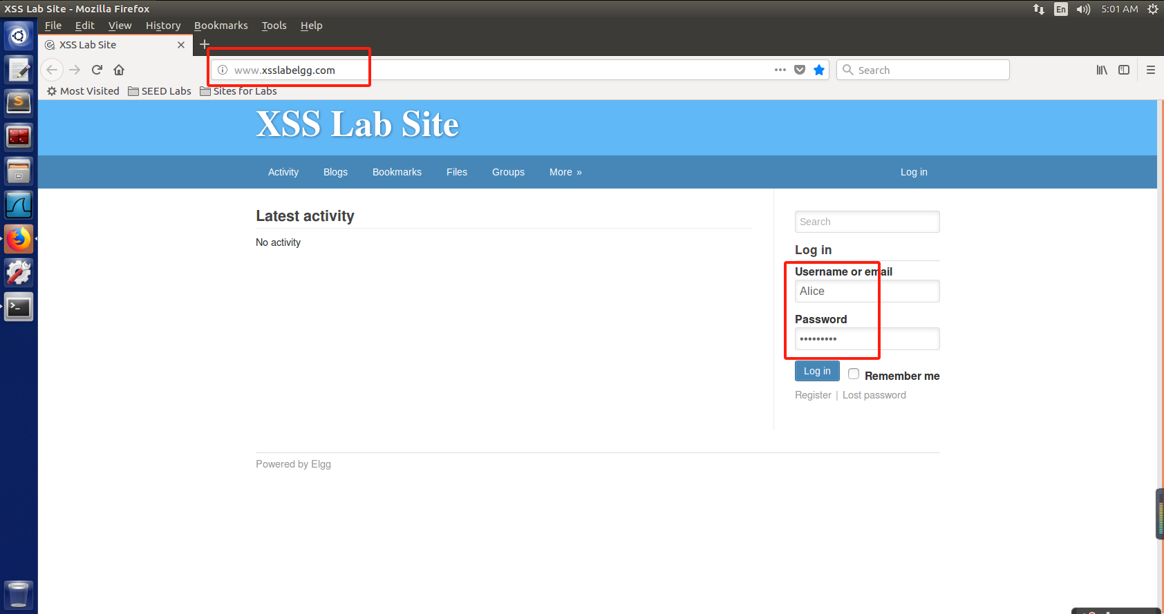 浏览器打开网站www.xsslabelgg.com,使用Alice/seedalice登录系统: