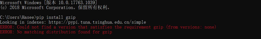 ERROR: Could not find a version that satisfies the requirement gzip (from versions: none) ERROR: No matching distribution found for gzip