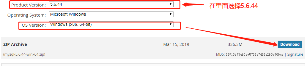 下拉框选择版本5.6即可下载对应的压缩包(一般都是64位)
