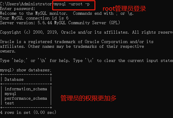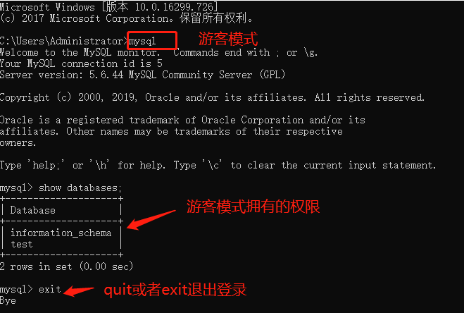 mysql  # 游客模式登录  功能及权限都很少!!!