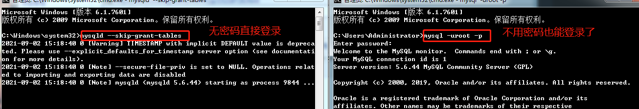 5.停止服务并正常启动 ctrl+c或者再以net stop mysql命令停止 net start mysql