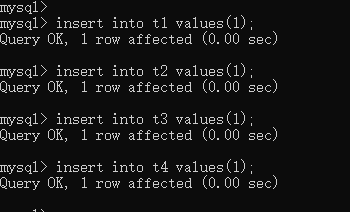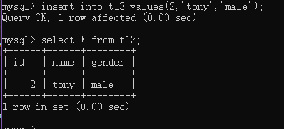 1.insert into t1 values() 按照字段顺序依次传入(一个都不能少)