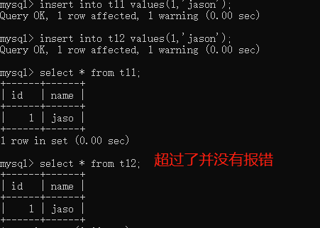 5.6超出了范围没有报错是因为我们没有开启严格模式(5.7及之后版本默认都有)