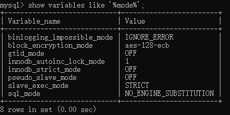 修改严格模式:set global sql_mode = 'strict_trans_tables';