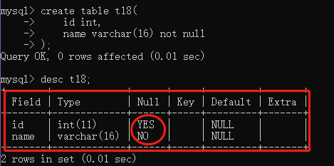 1.字段名和字段类型是必须的 宽度和约束条件是可选的