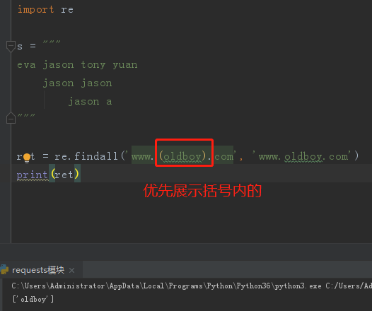 ret = re.findall('www.(oldboy).com', 'www.oldboy.com')