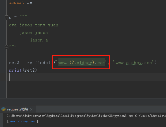 ret2 = re.findall('www.(?:oldboy).com', 'www.oldboy.com')