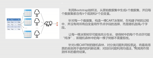 """ 随机森林中每颗决策树都不限制节点字段选择,有多棵树组成的随机森林 在解决分类问题的时候采用投票法、解决预测问题的时候采用均值法 """