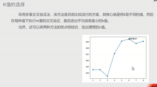 1.先猜测 2.交叉验证 3.作图选择最合理的k值 准确率,越大越好 MSE,越小越好