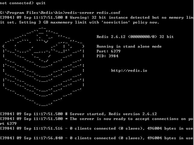 键入exit,然后键入如下命令,根据配置文件启动redis-server:
