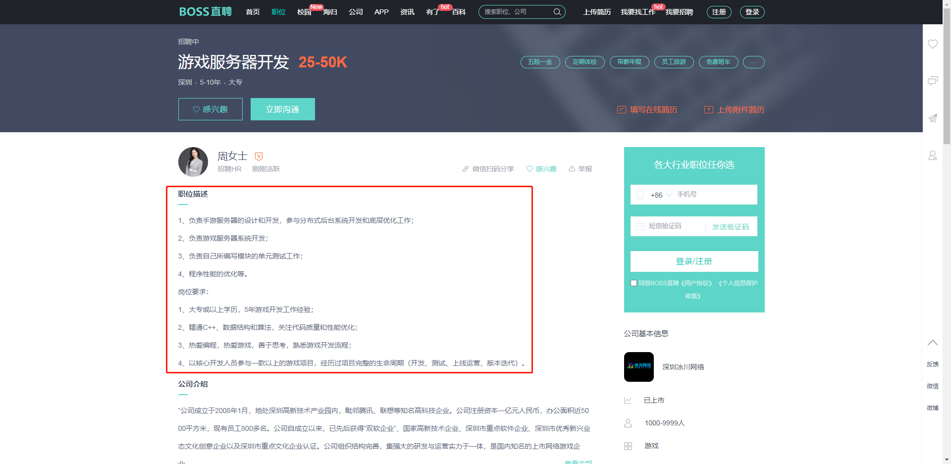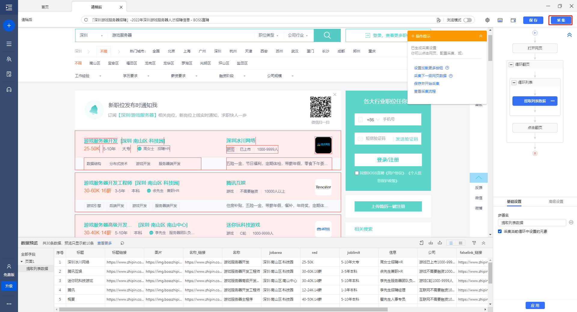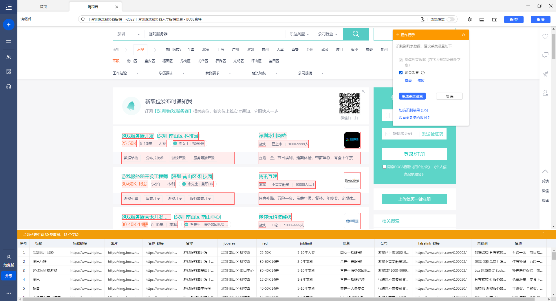 关于BOSS里 游戏服务器 职位的八爪鱼的使用和selenium爬虫