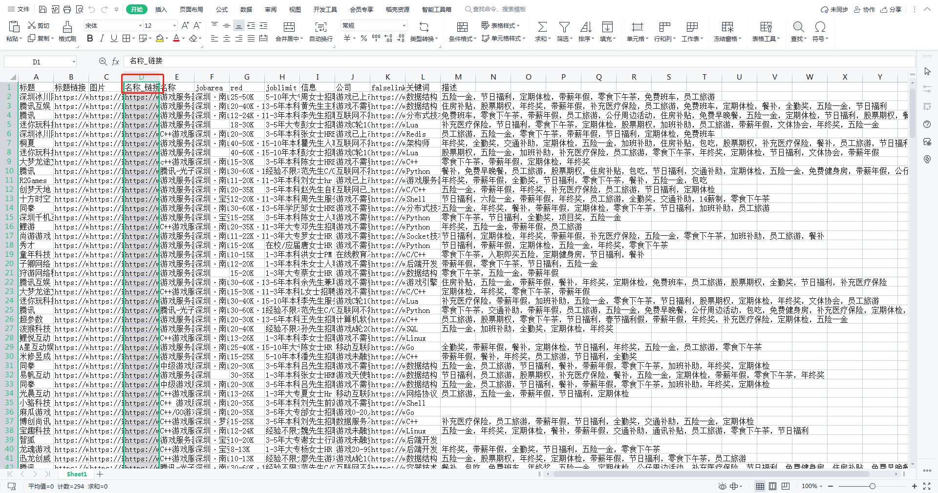 在这个d列这里获得的都是 每个职位的页面 ,我们选择需要获取的每个职位的职位描述,这通过八爪鱼是不能获取的。