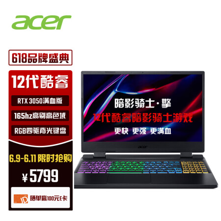 宏碁 新暗影骑士·擎 15.6英寸2.5K屏游戏笔记本电脑(12代i7-12700H 16G 512G RTX3060满血 165Hz 100%DCI-P3)