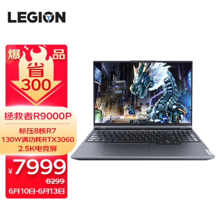 联想笔记本电脑 拯救者R9000P 16英寸高性能电竞游戏本(标压 8核 R7-5800H 16G 512G RTX3060 2.5k屏 165Hz)