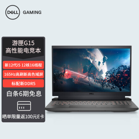 戴尔(DELL) 笔记本电脑 游匣G15 15.6英寸电竞游戏本(新12代i5-12500H 16G 512G RTX3050Ti 165Hz )耀夜黑