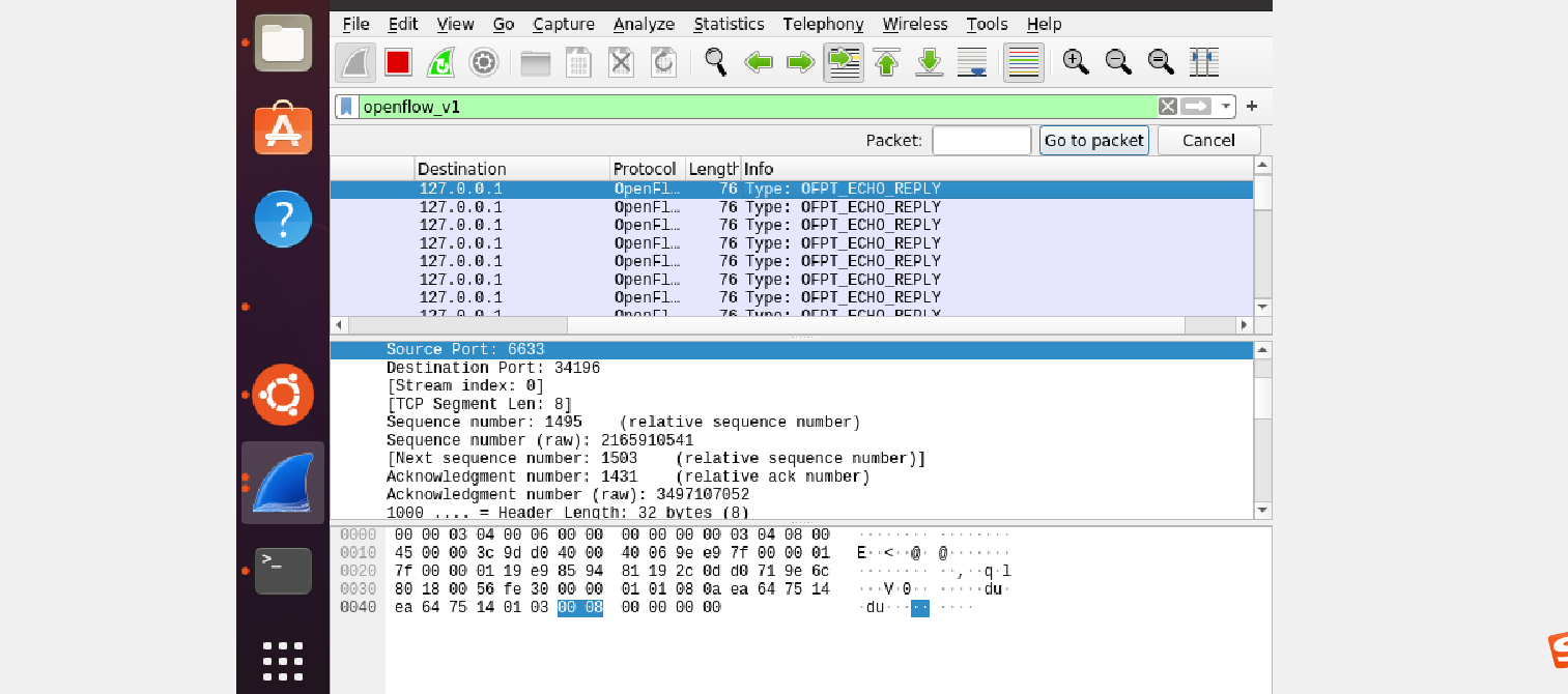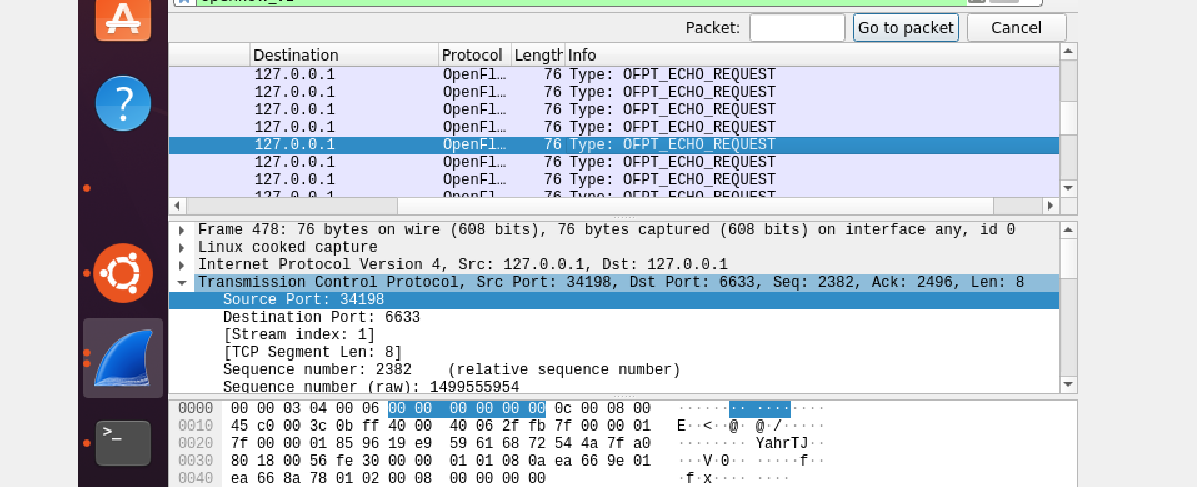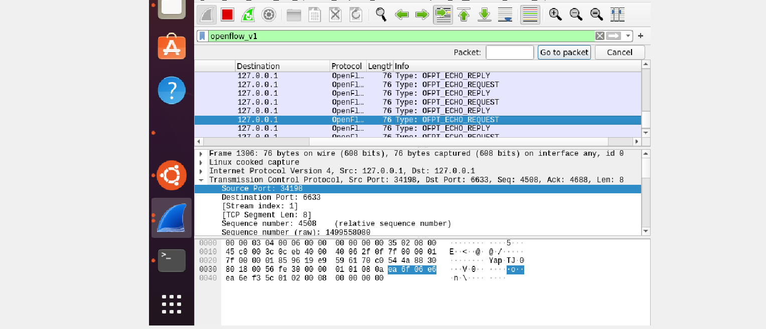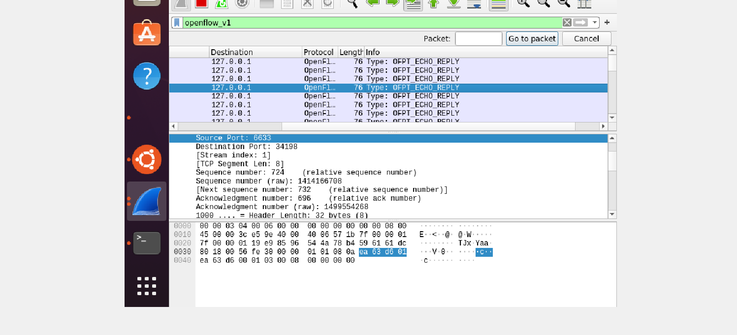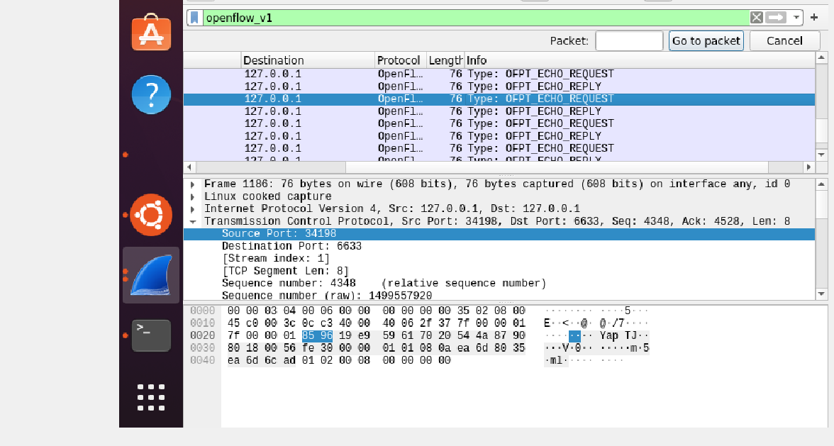 - 能够运用 wireshark 对 OpenFlow 协议数据交互过程进行抓包;