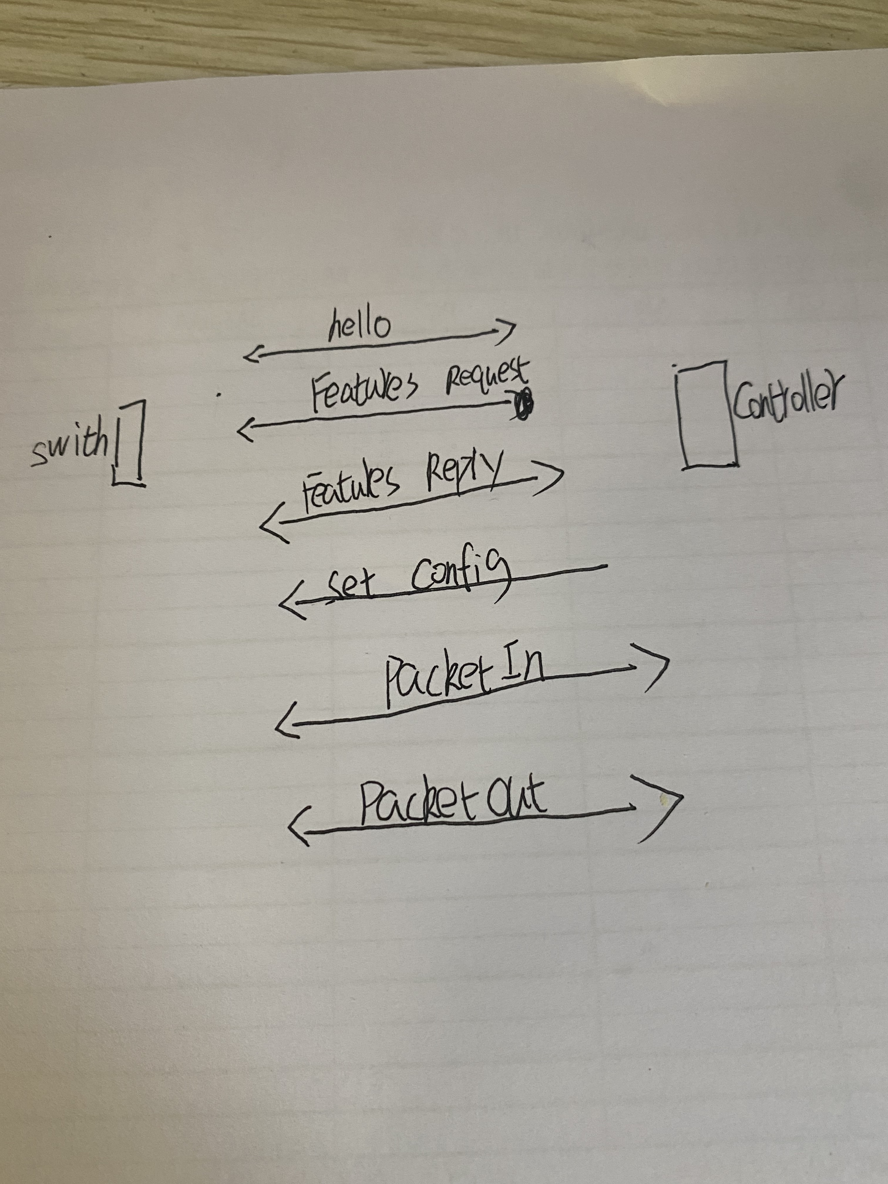 - 查看抓包结果,分析OpenFlow协议中交换机与控制器的消息交互过程,画出相关交互图或流图。