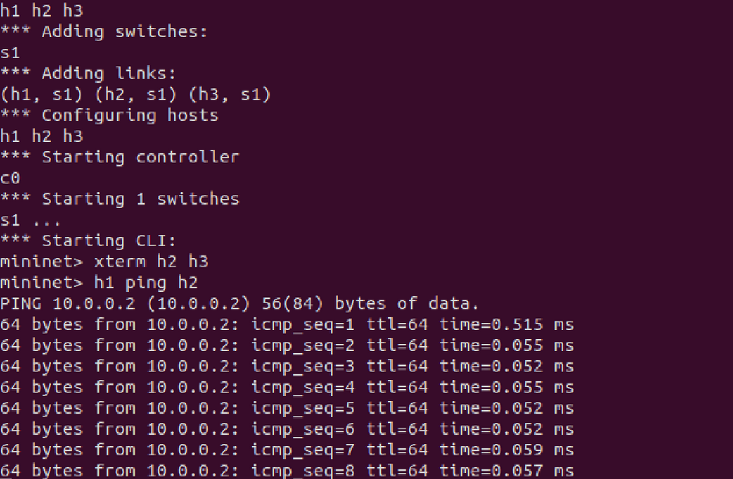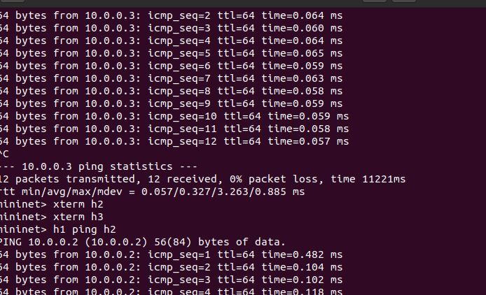 本次实验难度较大,自己也遇到了很多问题,好几次做的想放弃,在第一次做实验搭建拓扑的时候,运行错了pox命令,先运行了learning模块,导致h1 ping h2时h3也收不到数据,然后在mininet可视化拓扑上总是卡掉,命令生成拓扑时报错说控制器还没连接,最终在舍友的帮助下才完成的。慢慢努力,慢慢加油吧