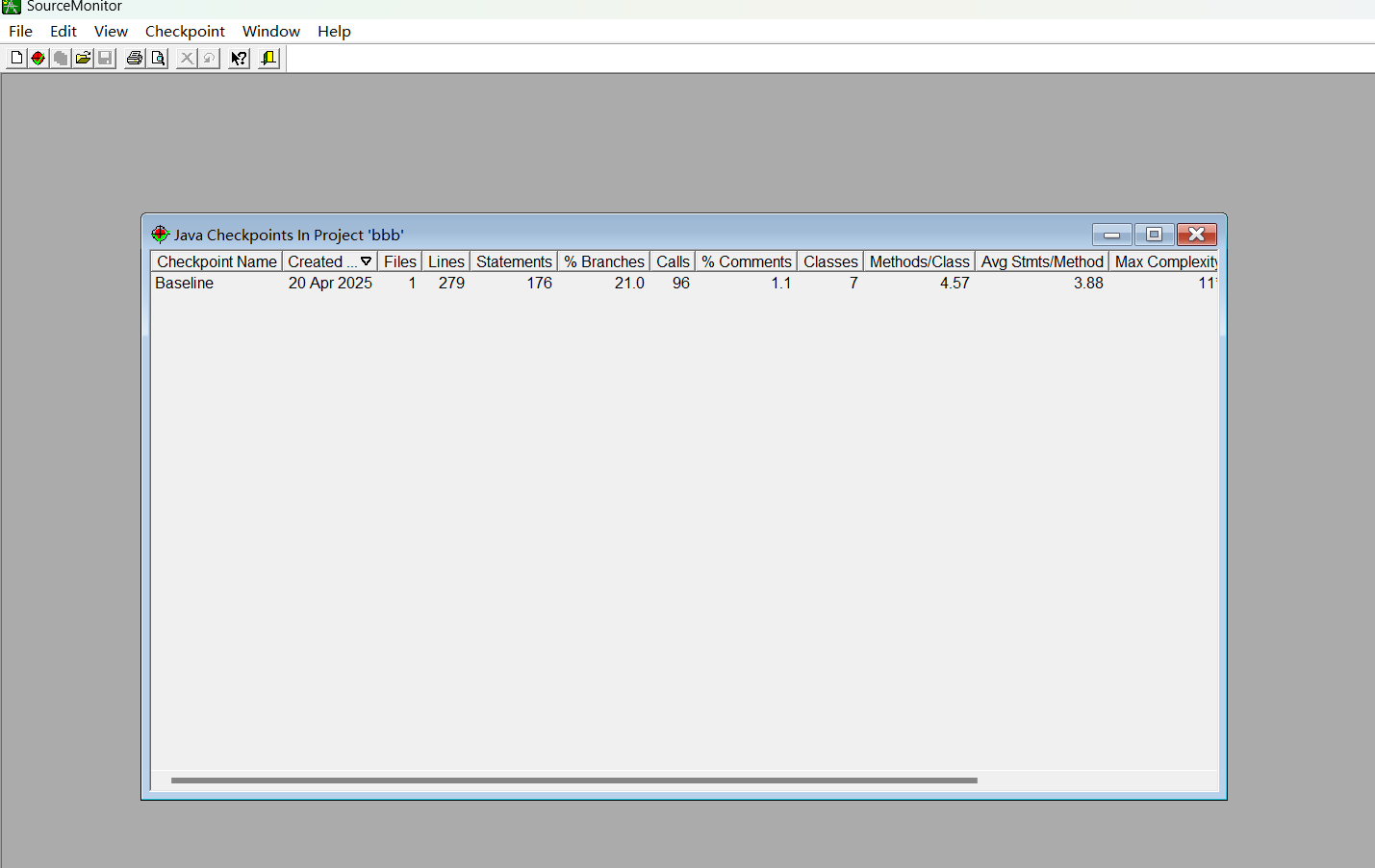 - Average Statements per Method:每个方法平均语句数,是 6.64 ,由语句总数除以方法总数得到。