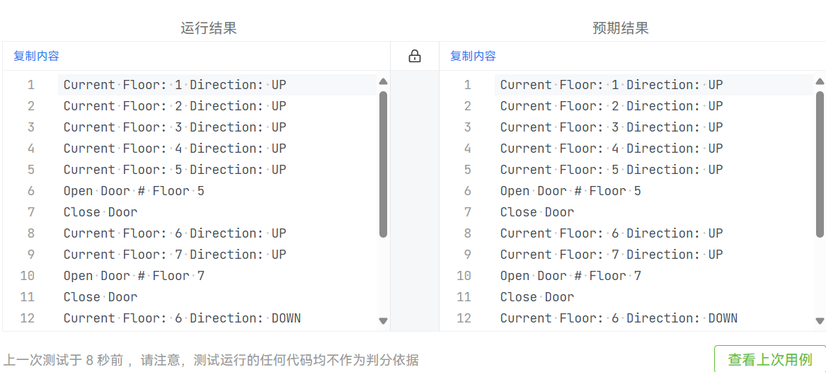 注意:本次作业类设计必须符合如上要求(包含但不限于设计电梯类、乘客类、队列类以及控制类),凡是不符合类设计要求此题不得分,另外,PTA得分代码界定为第一次提交的最高分代码(因此千万不要把第一次及第二次电梯程序提交到本次题目中测试)。