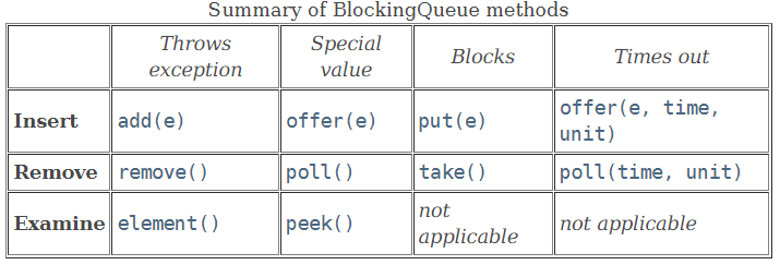 public class TaskRunnable implements Runnable { BlockingQueue<Task> queue; ... public void run() { try { processTask(queue.take()); } catch (InterruptedException e) { // restore interrupted status Thread.currentThread().interrupt(); } } }