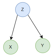 其中条件变量Z 为父节点;非条件变量X, Y 为子节点。