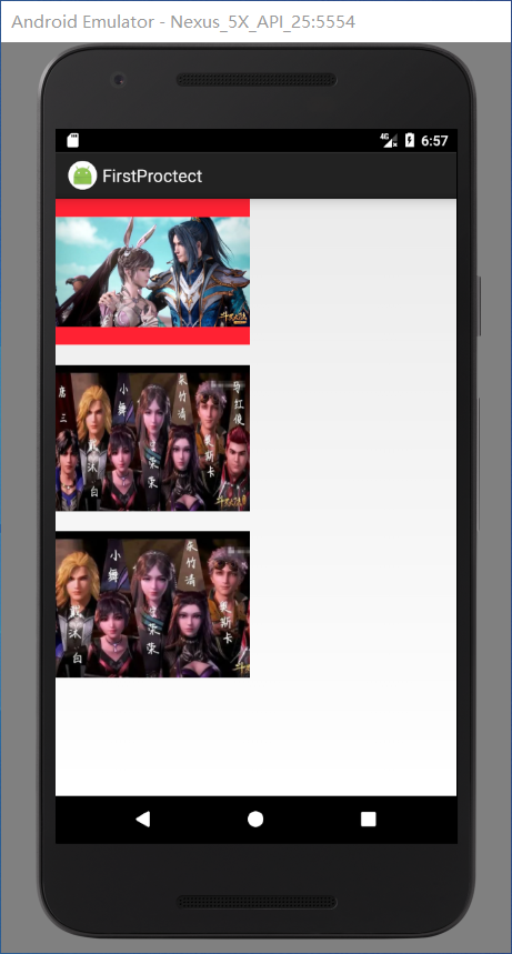 <?xml version="1.0" encoding="utf-8"?> <RelativeLayout xmlns:android="http://schemas.android.com/apk/res/android" android:layout_width="match_parent" android:layout_height="match_parent" android:padding="15dp"> <ImageView android:id="@+id/img01" android:src="@drawable/img01" android:layout_width="200dp" android:layout_height="150dp" android:background="#ff2233"/> <ImageView android:layout_marginTop="20dp" android:layout_below="@+id/img01" android:id="@+id/img02" android:src="@drawable/img02" android:layout_width="200dp" android:layout_height="150dp" android:background="#ff2233" android:scaleType="fitXY"/> <ImageView android:layout_marginTop="20dp" android:layout_below="@+id/img02" android:id="@+id/img03" android:src="@drawable/img02" android:layout_width="200dp" android:layout_height="150dp" android:background="#ff2233" android:scaleType="centerCrop"/> </RelativeLayout>