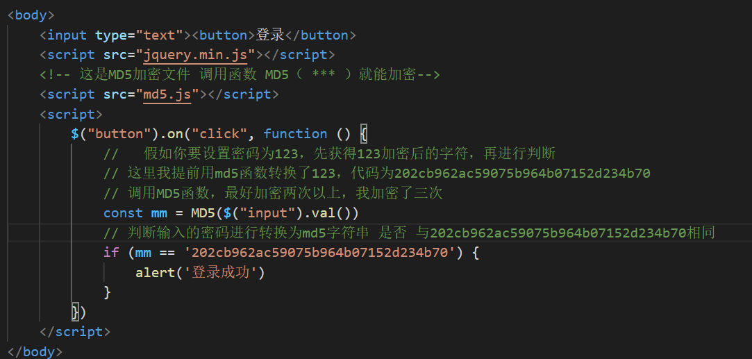 这里我用的MD5加密,简单粗暴,下面是MD5加密的原代码,直接复制就行,调用函数MD5(要转换的密码),进行转换