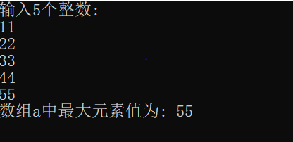 // 功能描述:输入一组整数,输出最大值 #include <stdio.h> int findMax(int a[], int n); // 函数声明 const int N=5; int main() { int a[N]; int max, i; printf("输入%d个整数: \n", N); for(i=0;i<N;i++) scanf("&d",&a[i]); max=findMax(a,N); printf("数组a中最大元素值为: %d\n\n", max); return 0; } int findMax(int a[], int n) { int i,max; max=a[0]; for (i=0;i<N;i++) { if (a[i]>max) max=a[i]; } return max; }