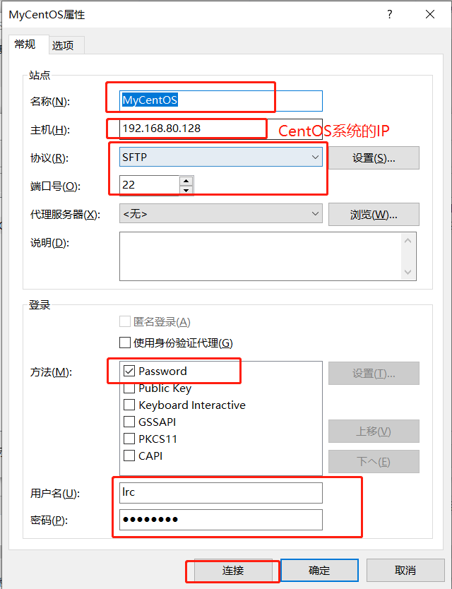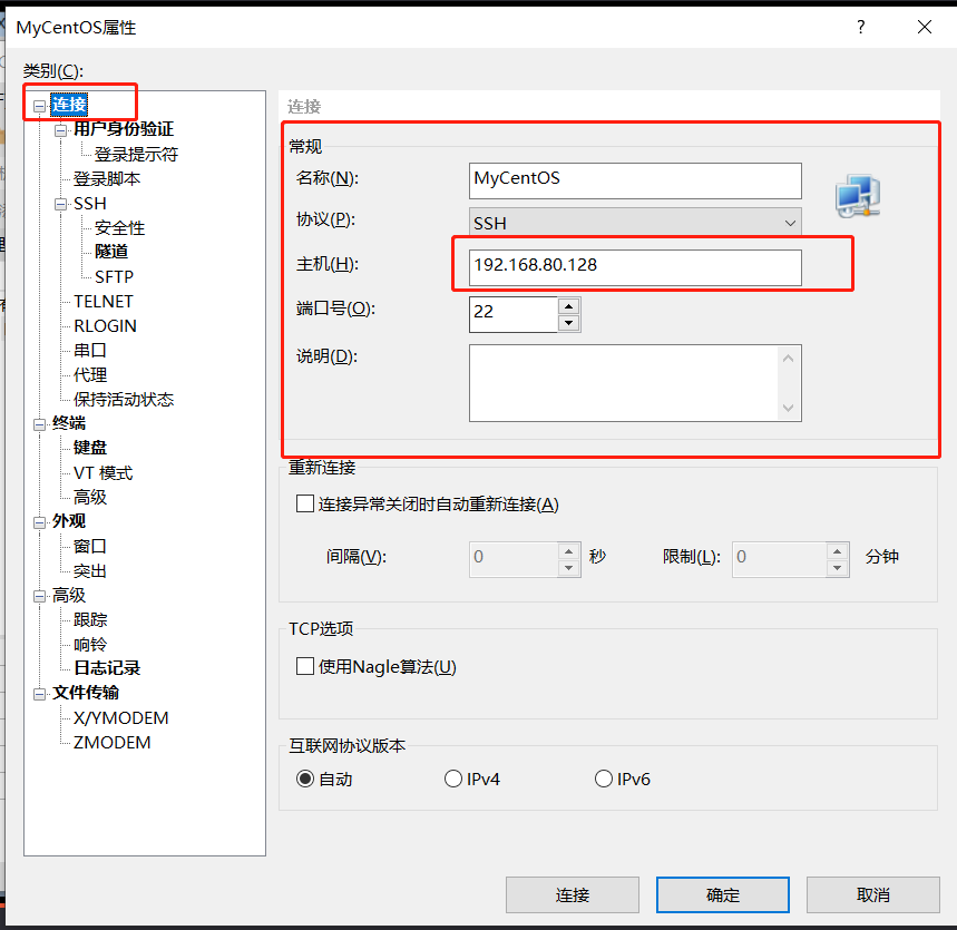 2、填入会话信息->连接