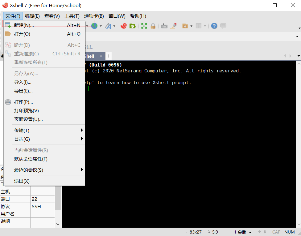 (1)打开Xshell新建会话