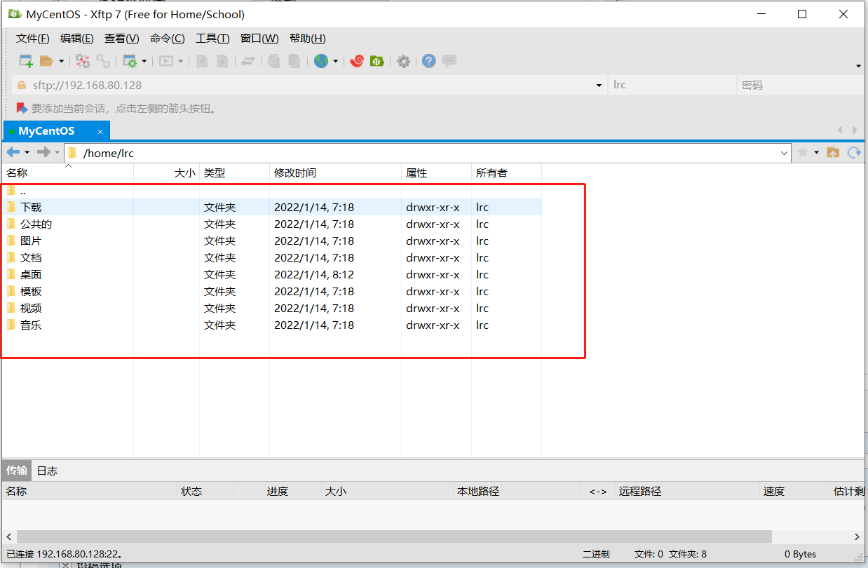 接下来就可以对CentOS进行远程上传文件和下载文件了。