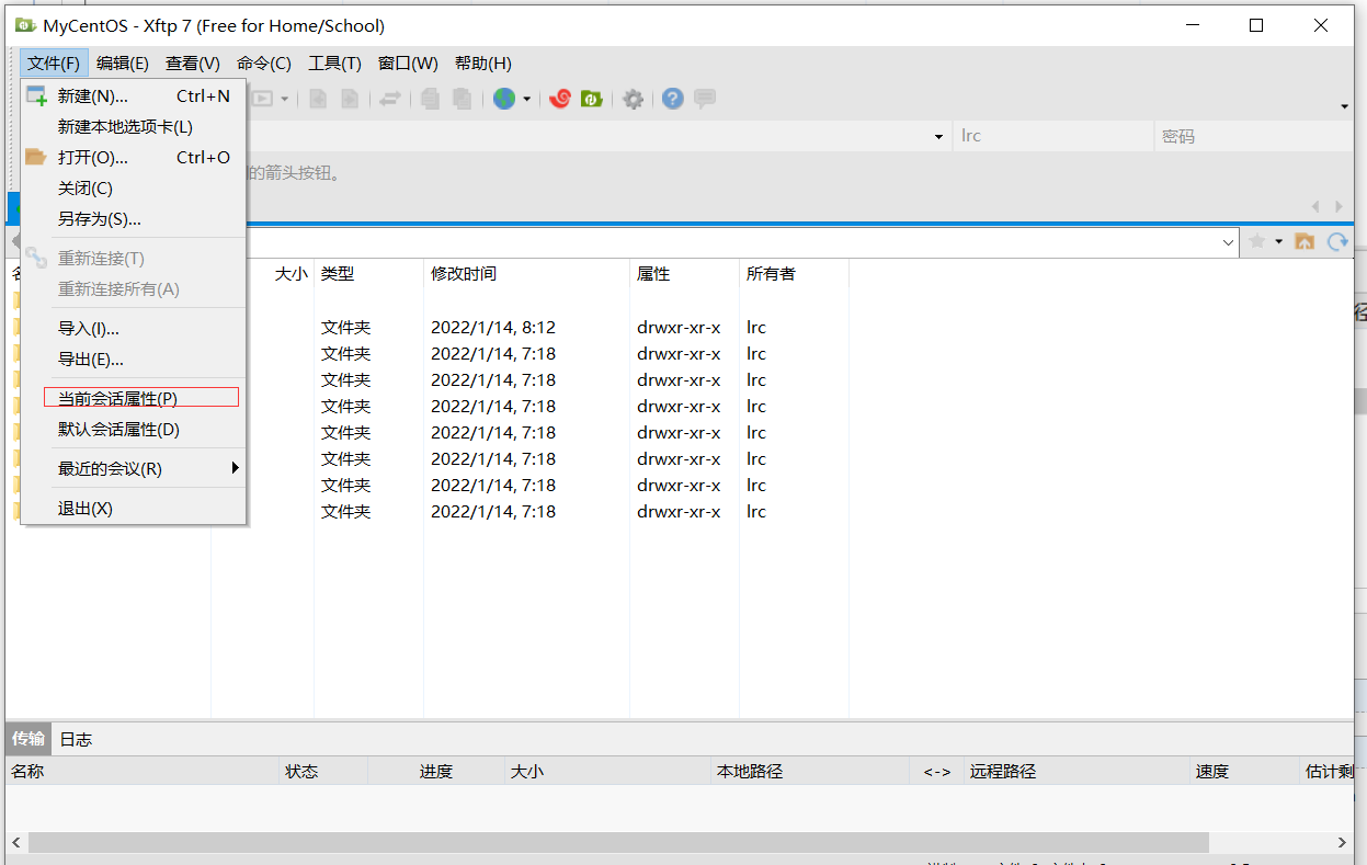 选择文件->当前会话属性