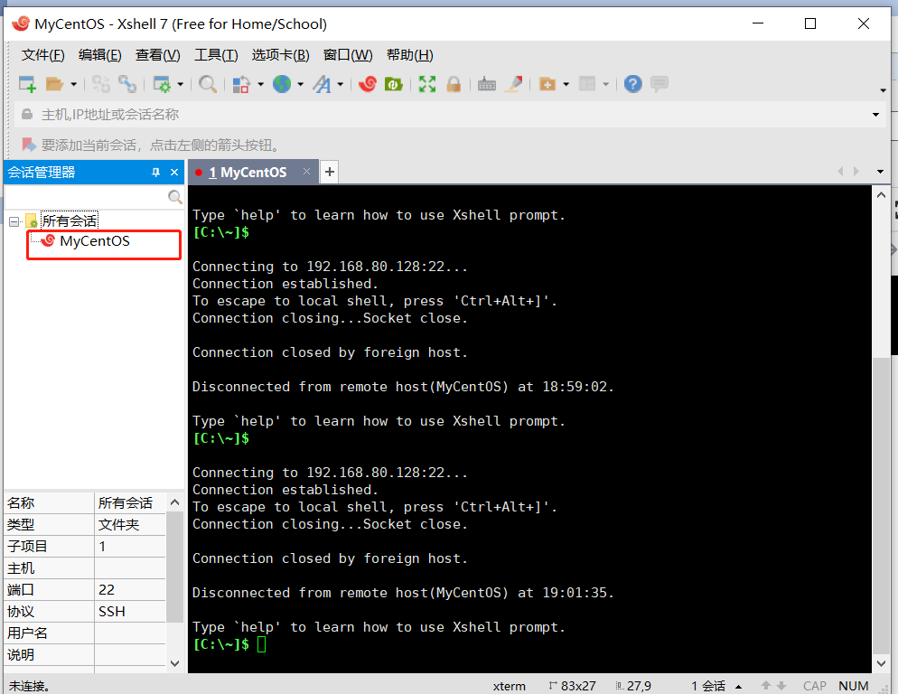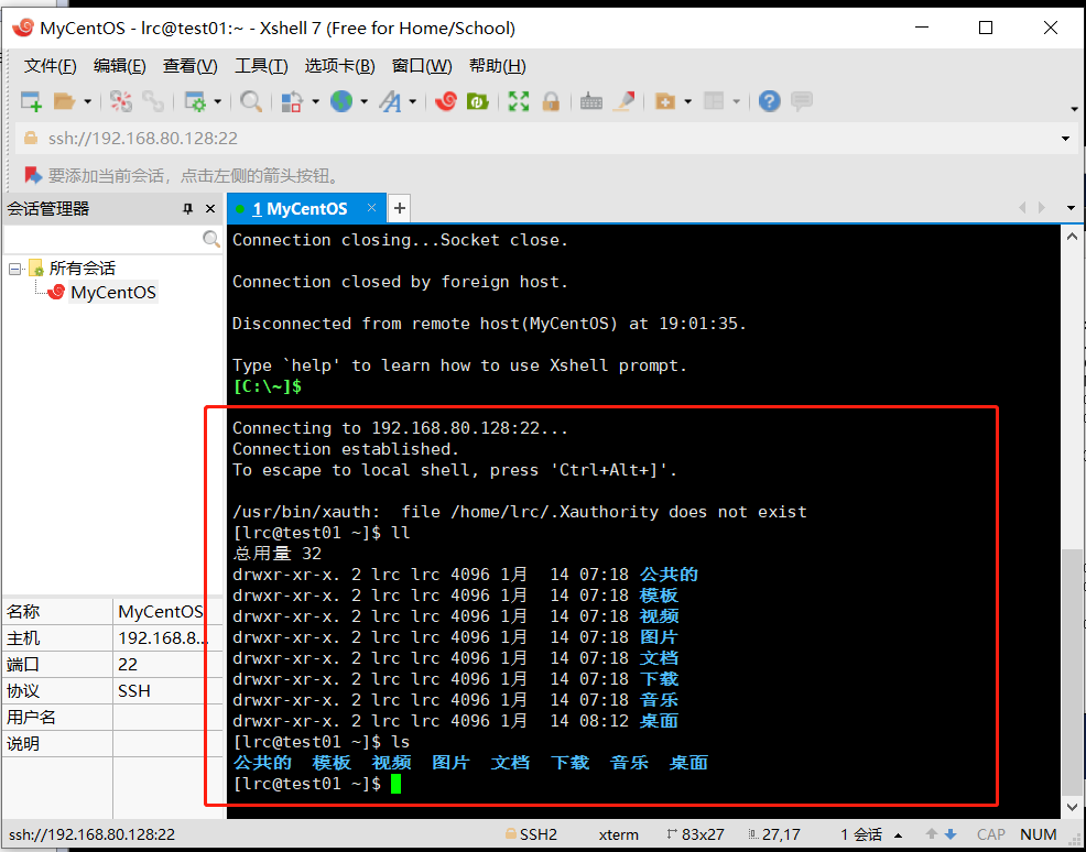 连接成功,此时我们就可以通过Xshell来远程操作我们的CentOS系统