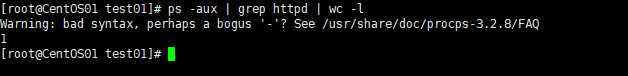 实例3:统计当前系统中httpd进程数目:ps -aux | grep httpd | wc -l