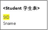 Student(SID, Sname, Sage, Ssex) 学生表