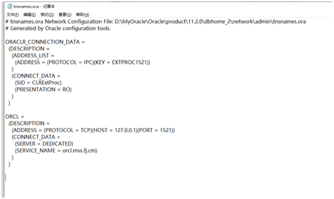 我的Oracle安装在“D:\MyOracle\Oracle\”路径下,因此我的“tnsnames.ora”在
