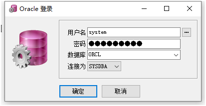 3.输入登录信息,如下图。根据刚才配置的TNSNAME.ORA,选择到数据库ORCL,因为system是管理员账号,连接选择SYSY=DBA。点击“确定”,登录