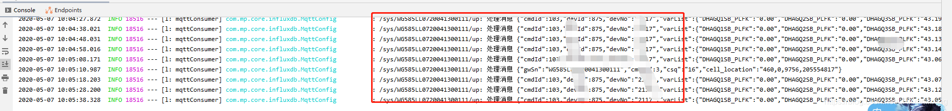 LOGGER.info("/sys/WG585LL0720041300111/up: 处理消息 " + payload);