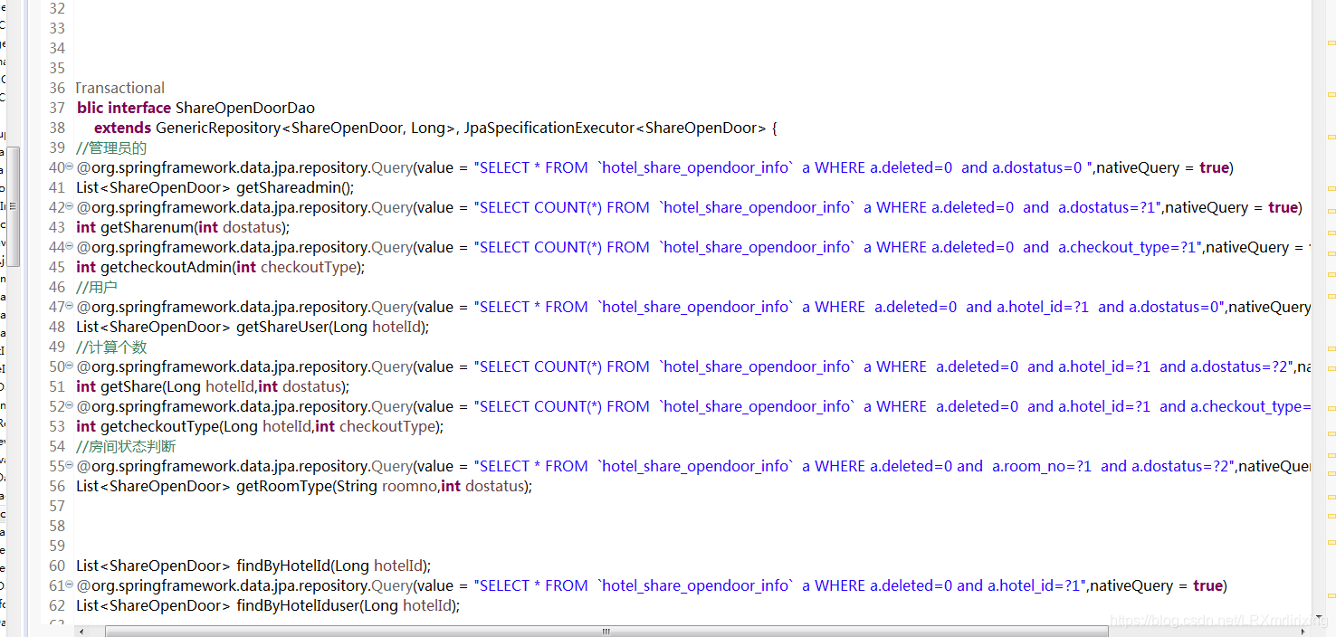 StringBuffer jpql = new StringBuffer(" select * from hotel_share_opendoor_info fa where deleted=false ");