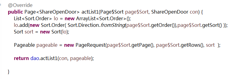 default Page<ShareOpenDoor> actList1(ShareOpenDoor con, Pageable pageable) {