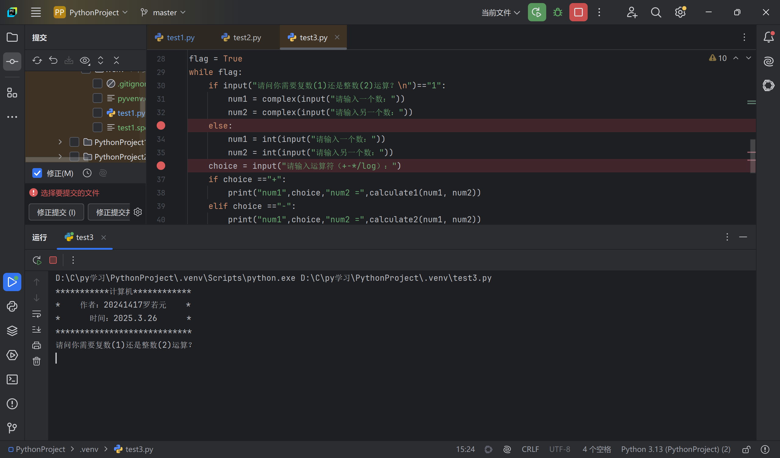 if input("请问你需要复数(1)还是整数(2)运算?\n")=="1":