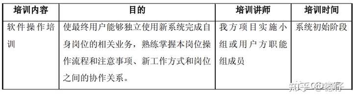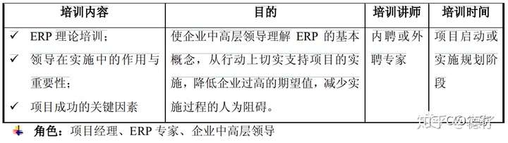 在该阶段主要完成以下任务:企业中高层培训、关键用户培训、系统管理员培训、最终用户培训培训是分层次、分对象、分阶段的,所以该阶段任务实际上是贯穿于项目实施的各个阶段,而不是独立的一个阶段,同时也是实现技术转移和知识转移的过程;高质量的培训,等于项目成功了一半,项目经理应特别重视。