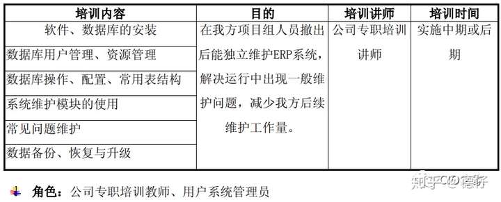 (6) 指导建立系统维护制度。在项目实施前期,实施经理要指导用户建立完善的数据安全备份和系统权限管理制度。并要求对方专人负责。