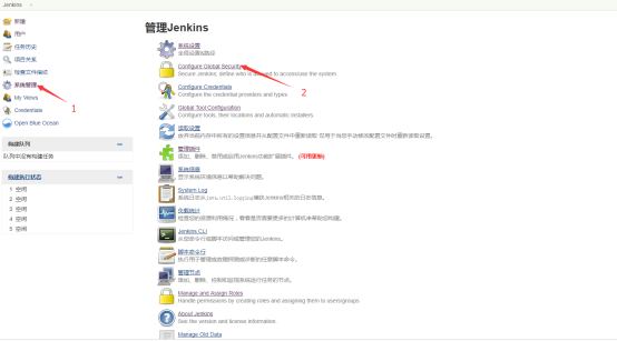 插件安装后,我们先启用该插件管理Jenkins权限。