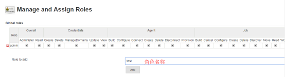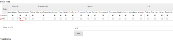 Jenkins用户都有两种角色:全局角色和Job角色,我们先创建全局角色test,