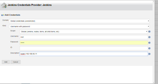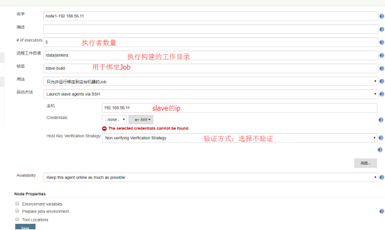 注:如果slave节点不能启动,可能需要在从节点上安装jdk,如果要在从节点上执行maven构建,还需要在从节点上安装maven。使用同样的方便添加node2-192.168.56.12。